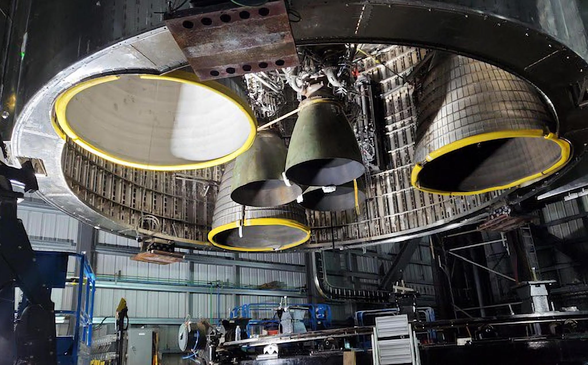 | A Starship with both sea-level and vacuum Raptor engines. |